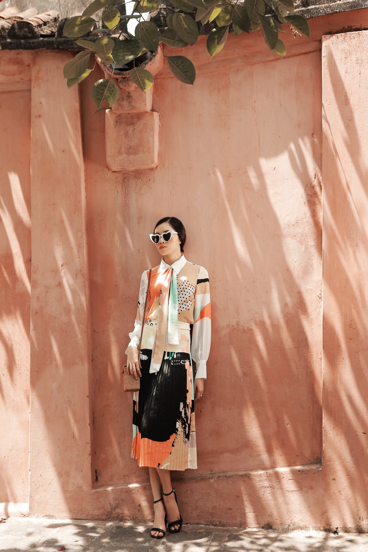 Người đẹp tự phối trang phục lẫn phụ kiện đi kèm.