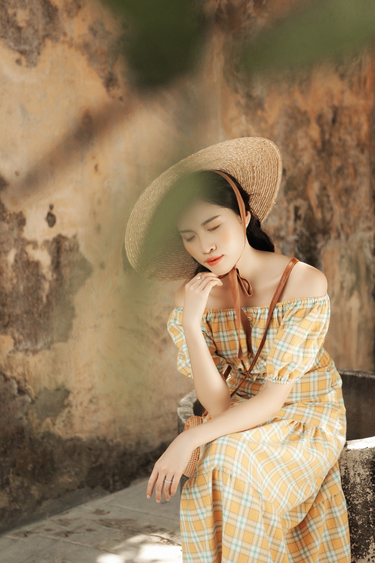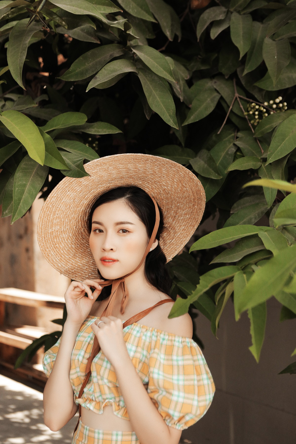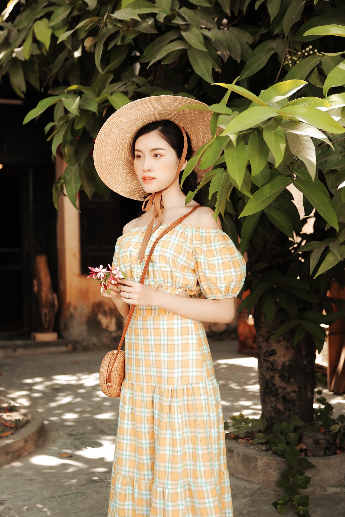 Điểm nhấn của phong cách vintage thể hiện qua các phụ kiện như mũ rộng vành, giày đế thô, túi cói. Thanh Thanh Huyền thích thử nghiệm, phối nhiều kiểu trang phục theo phong cách này.