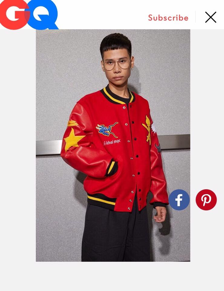 Trong một show diễn khác, Fuji Nguyễn xuất hiện trên tạp chí GQ với chiếc áo khoác bóng chày đặc biệt.