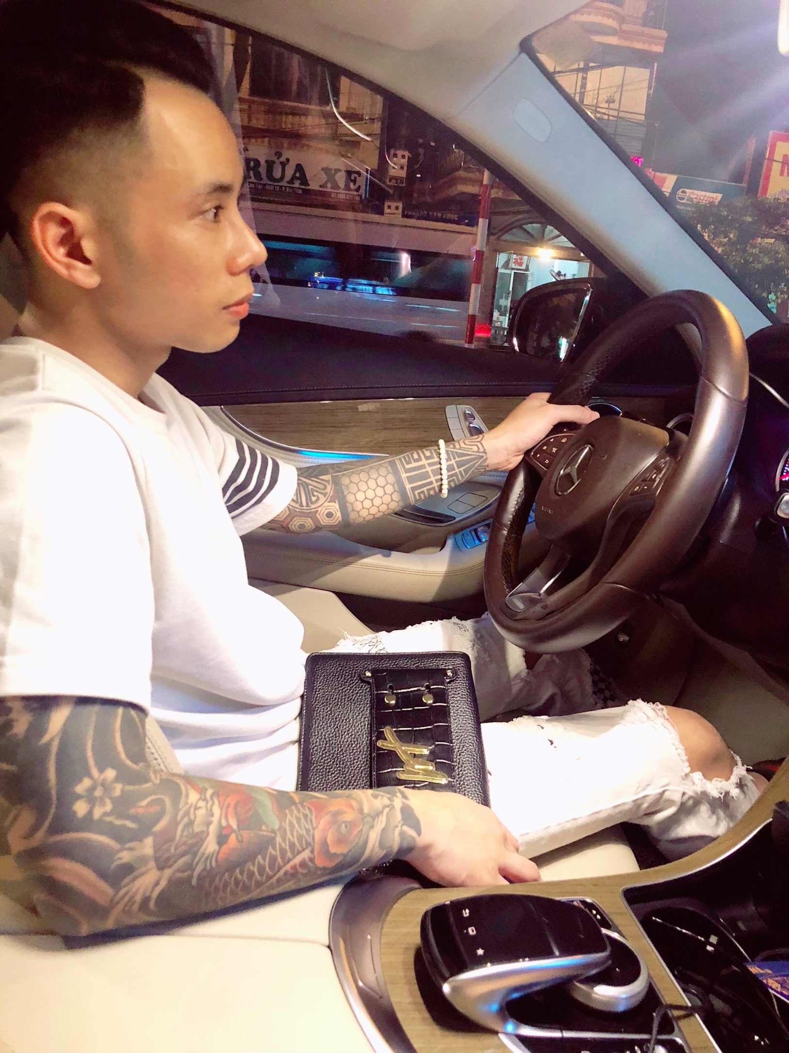 Ông bầu Vũ Khắc Tiệp thể hiện đẳng cấp của mình với chiếc clutch tương tự có phần tay cầm thửa từ da cá sấu.