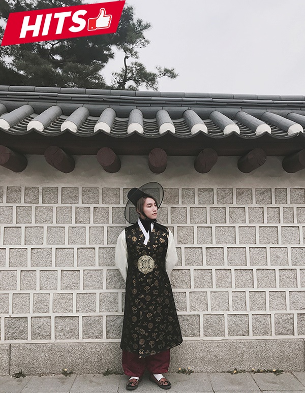 Vừa tới Hàn Quốc, Sơn Tùng đã có bộ hình đẹp lung linh với trang phục hanbok và được nhiều người khen ngợi như trai Hàn. Thiết kế với tông màu lạnh từ đen cùng họa tiết nhí từ chất liệu lụa cao cấp tôn lên vẻ ngoài cao sang cho giọng ca Nơi này có anh.