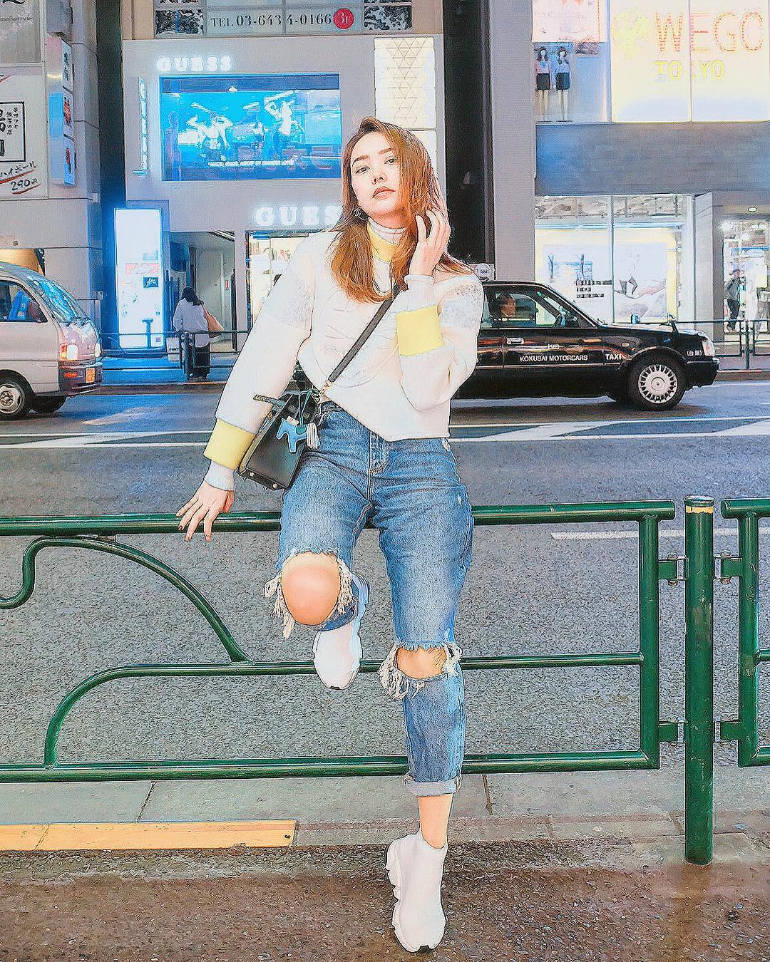 Chiếc quàn rách gối trẻ trung được kết hợp với thương hiệu giày đang gây sốt Balenciaga.