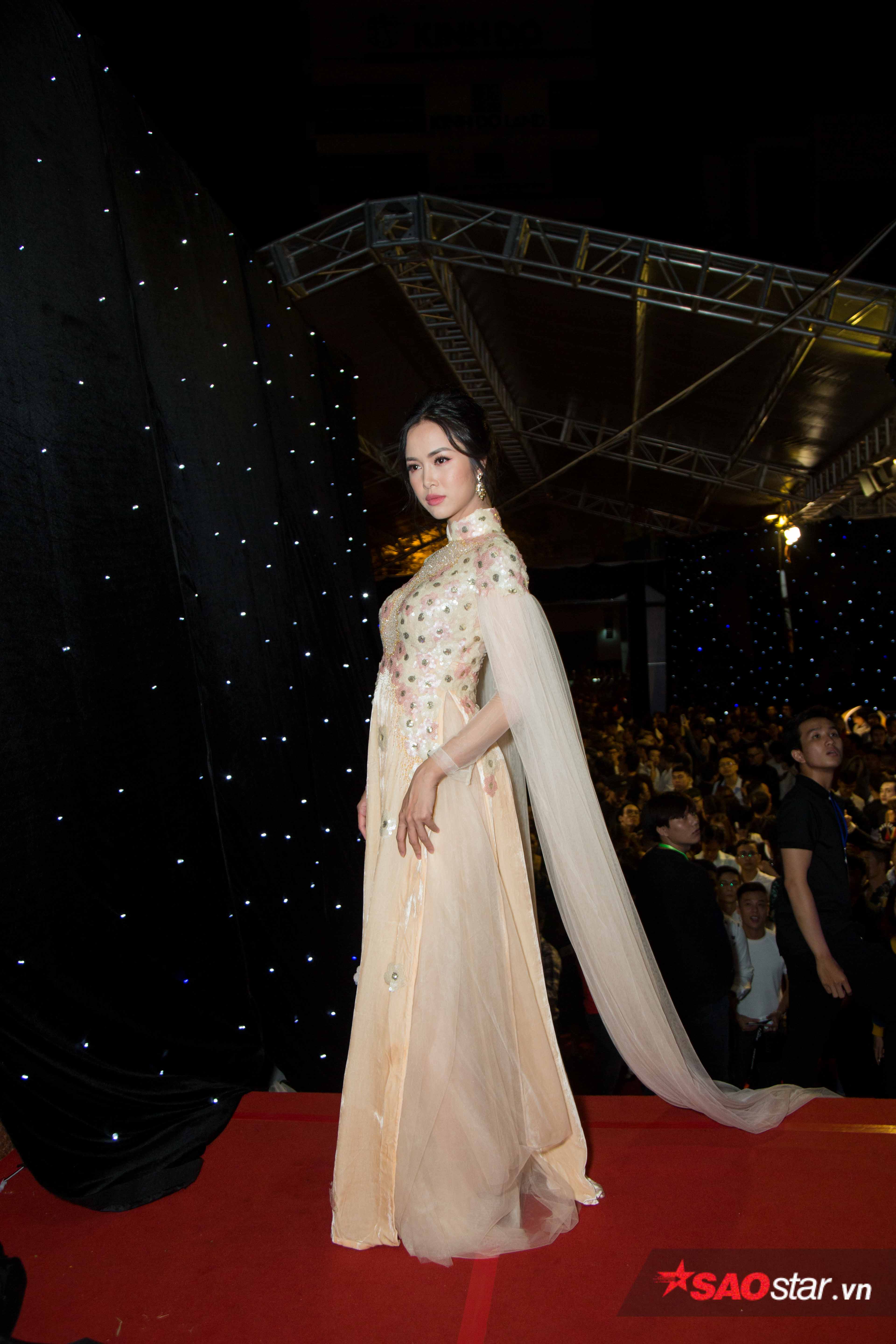 Người đẹp Vũ Ngọc Anh tỏa sáng thảm đỏ với một bộ áo dài vô cùng lộng lẫy.