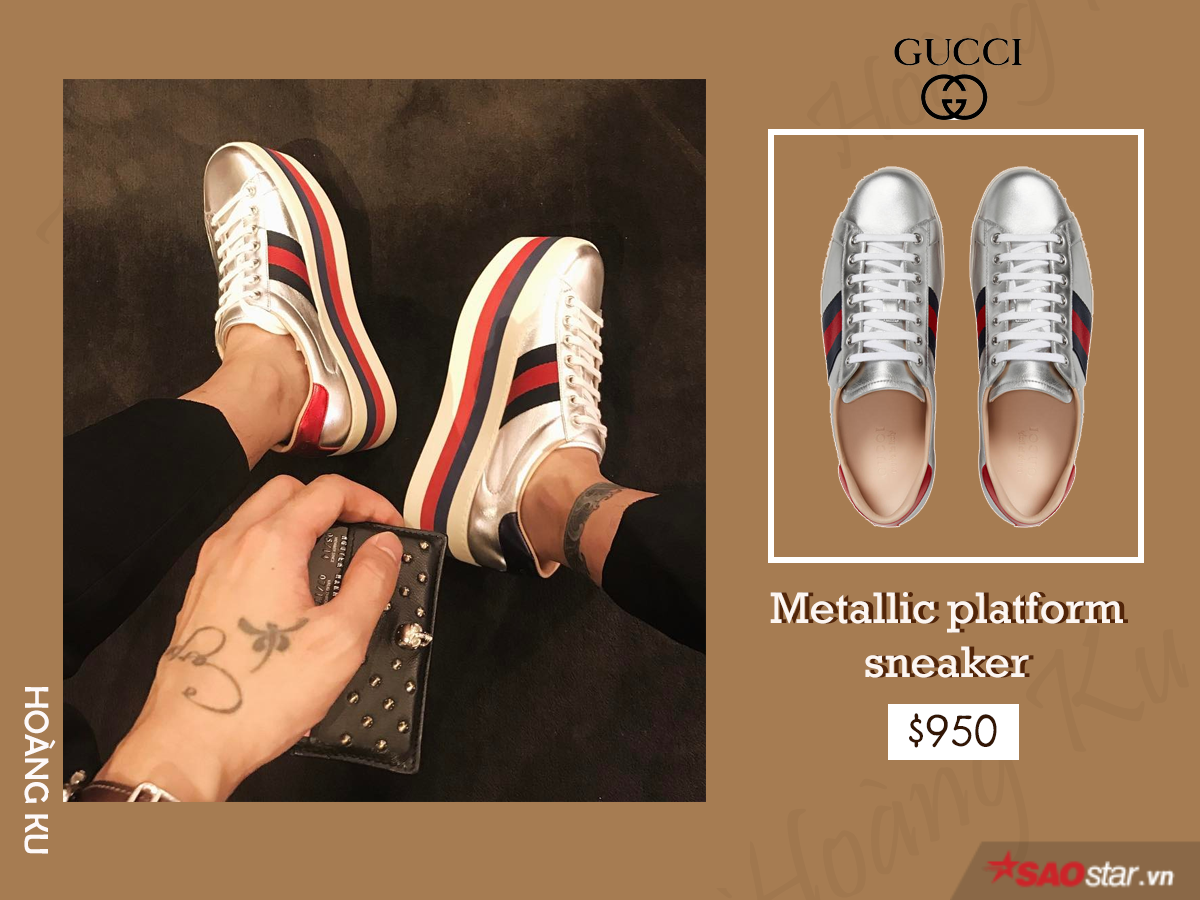 Là một fashion icon kiêm stylist, chẳng có gì lạ lẫm khi Hoàng Ku luôn biết cách đón đầu xu hướng bằng loạt item bắt mắt và trendy này. Với mức giá 950$, tương đương 21 triệu đồng, đôi giày “hot hòn họt” vừa giúp chủ nhân nâng tầm phong cách, vừa khắc phục chiều cao. Một công đôi việc, chần chờ gì mà không mua?