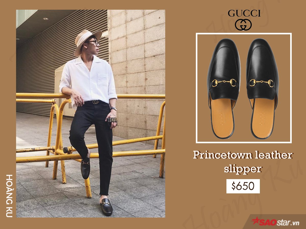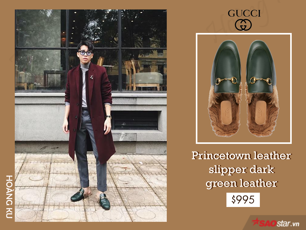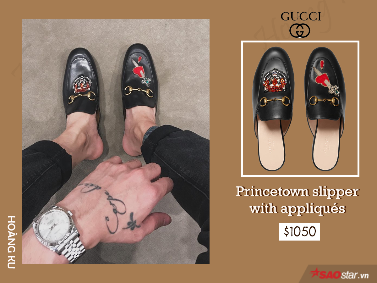 Thể hiện độ chịu chơi khi xuất hiện với quần áo đắt tiền đến từ các thương hiệu nổi tiếng chưa đủ, Hoàng Ku còn khiến giới mộ điệu ngẩn ngơ trước gia tài giày khủng. Đơn cử là đôi Princetown leather loafer đơn giản mà tốn bộn tiền.