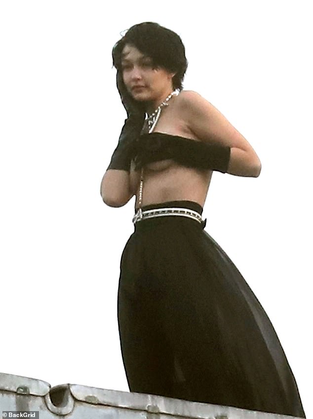 Giữa thời tiết lạnh lẽo, Gigi Hadid chụp hình bán khỏa thân trên sân thượng nhà hát