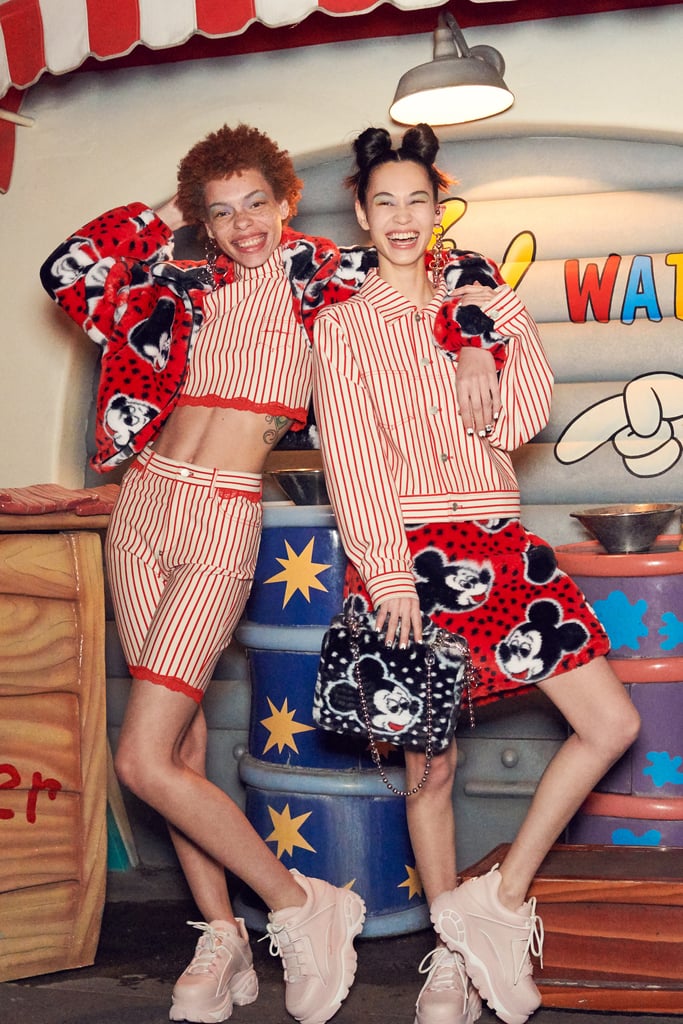 Opening Ceremony đã đưa Mickey lên những mẫu thiết kế ấn tượng như chân váy maxi, áo khoác hay chiếc túi xách.