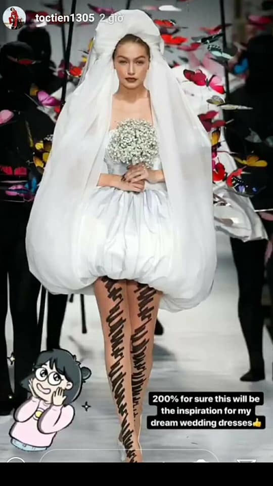 Mới đây, cộng đồng mạng còn tiếp tục dậy sóng khi Tóc Tiên đăng tải tấm ảnh về mẫu váy cưới mới nhất của thương hiệu Moschino kèm caption “200% for sure this will be the inspiration for my dream wedding dresses.” - chắc chắc 200 phần trăm đây sẽ là cảm hứng cho chiếc váy trong mơ của tôi.