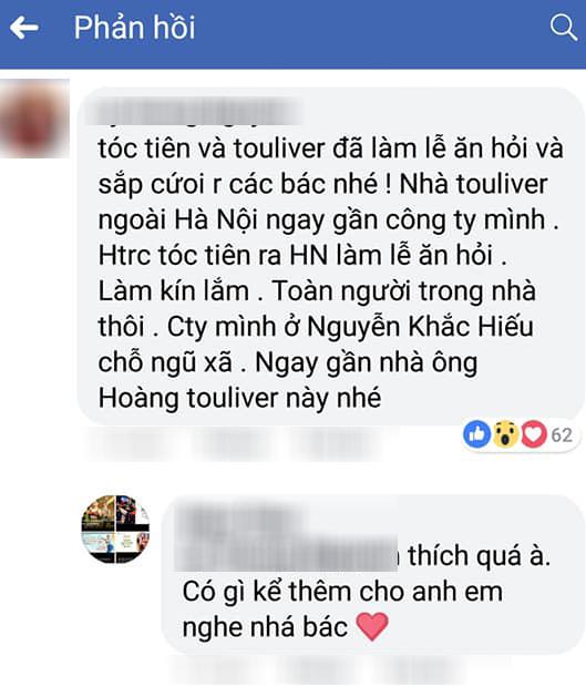Sau đám cưới của loạt mỹ nhân Lan Khuê, Nhã Phương… dân tình tiếp tục phát sốt trước tin đồn nữ ca sĩ Tóc Tiên và Hoàng Touliver đã làm đám hỏi, cũng như chuẩn bị tổ chức đám cưới, về chung một nhà.