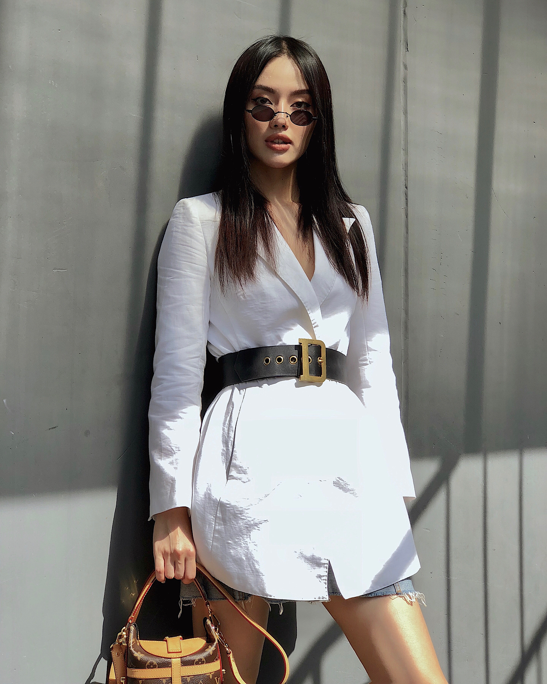 Sử dụng chất liệu linen đang cực hot, Khánh Linh The Face đem đến cảm giác nhẹ nhàng, trong trẻo pha chút thời thượng cùng loạt phụ kiện đắt giá.