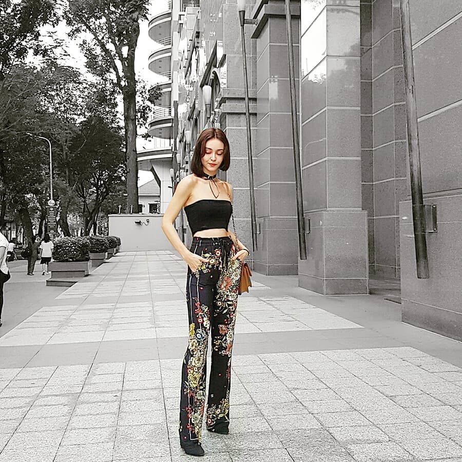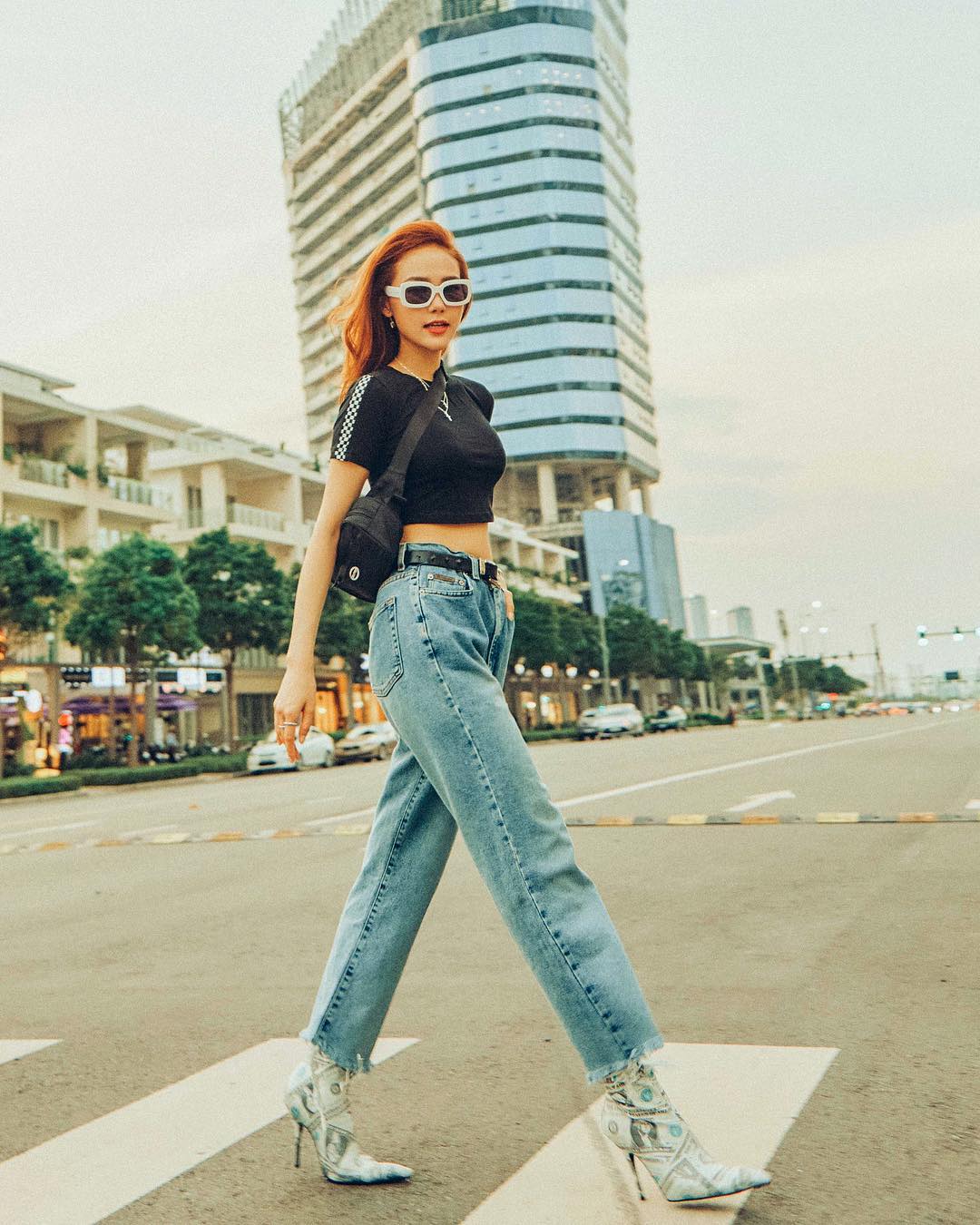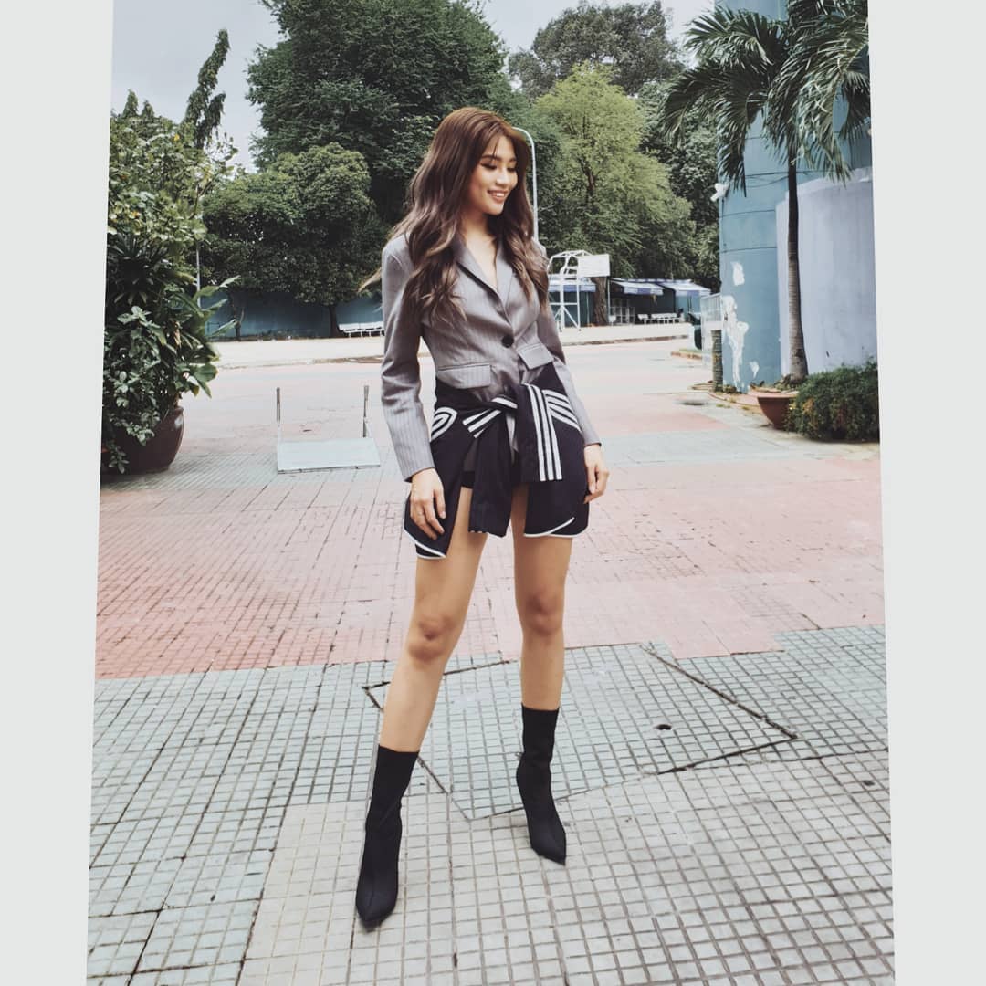 Dù không quá cao, nhưng với set đồ này, Minh Hằng thật sự biết cách khoe hết vẻ đẹp hình thể.