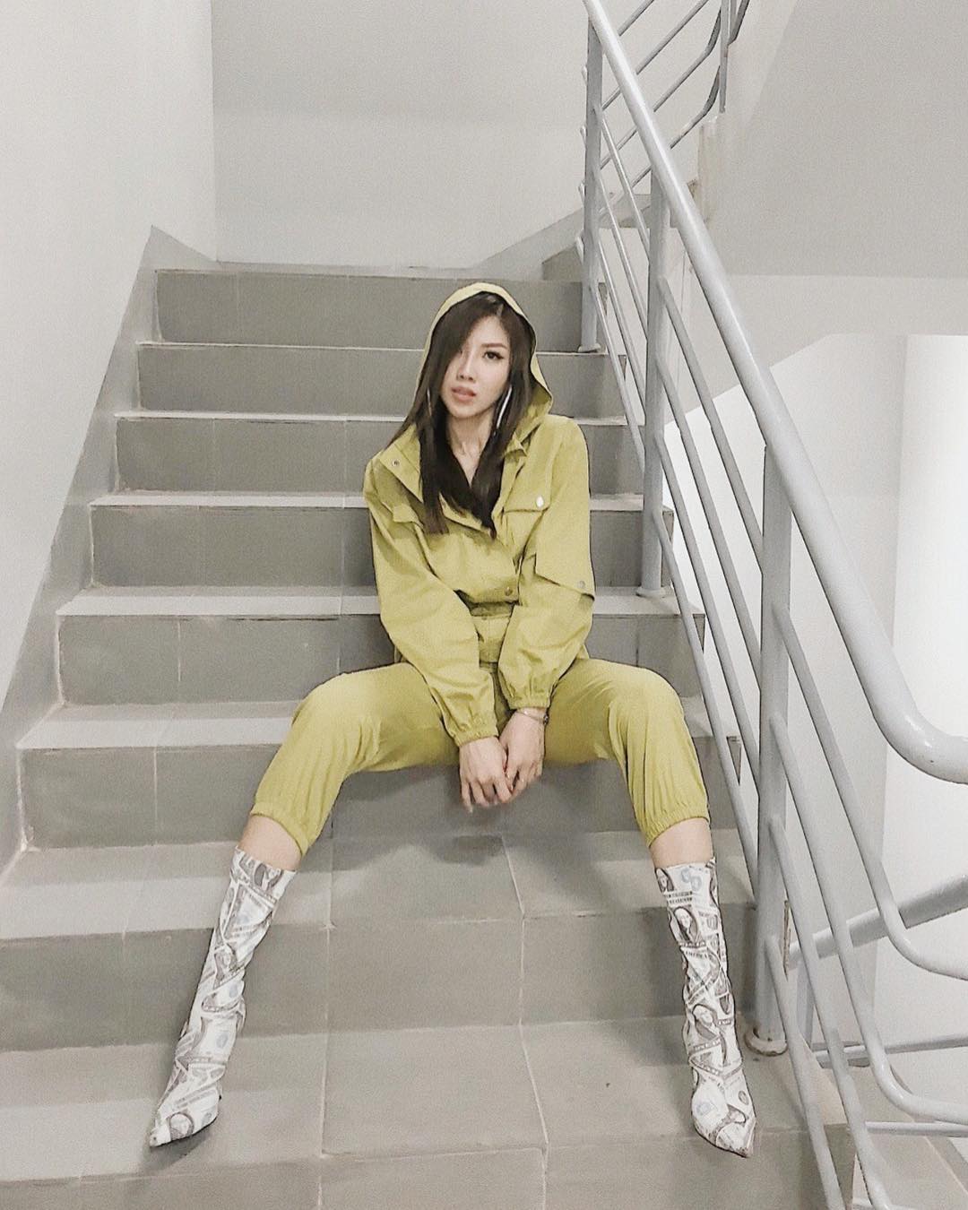 Cô nàng Mlee khoe khéo eo thon, chân dài thẳng nuột cùng set đồ mang âm hưởng thể thao, nhưng cũng thể hiện nét nhẹ nhàng.
