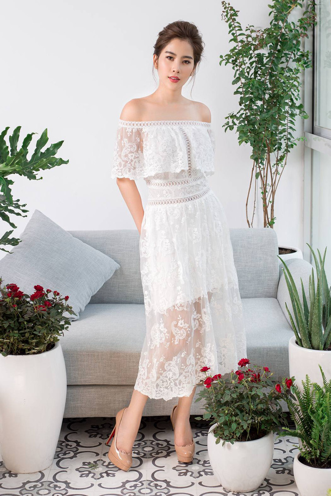 Nhã Phương trung thành với gam màu trắng tinh tế, chất liệu ren hợp xu hướng.