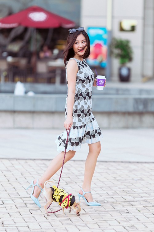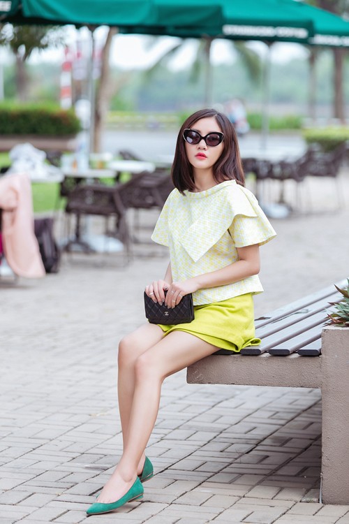 Những mẫu váy ngắn, váy liền thân kiểu dáng đơn giản, sắc màu nhẹ nhàng giúp cô trở nên xinh đẹp và đáng yêu.