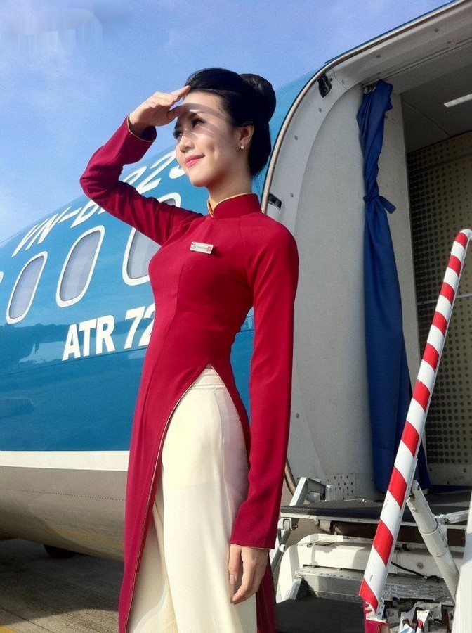 Ngọc Châm xinh đẹp, rạng rỡ trong đồng phục áo dài của Vietnam Airline.