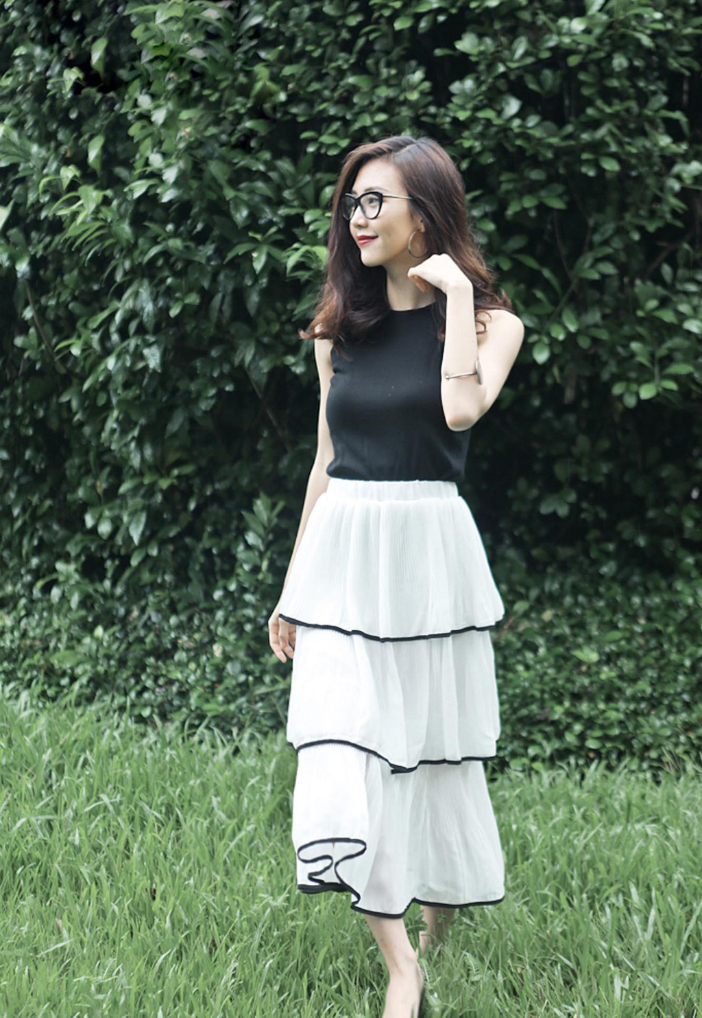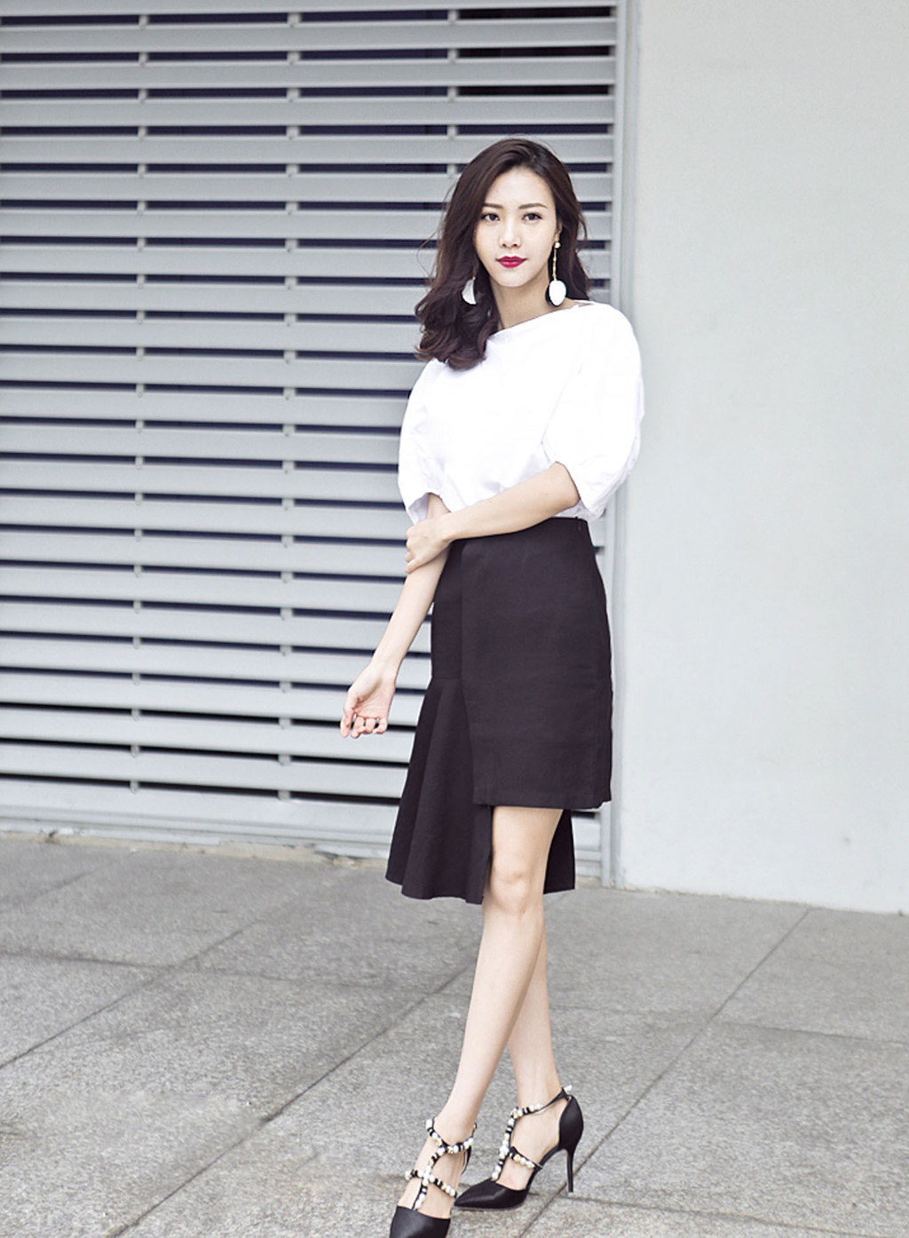 Chân dài 9X còn được biết đến với tài phối đồ 2 màu trắng - đen đẳng cấp.