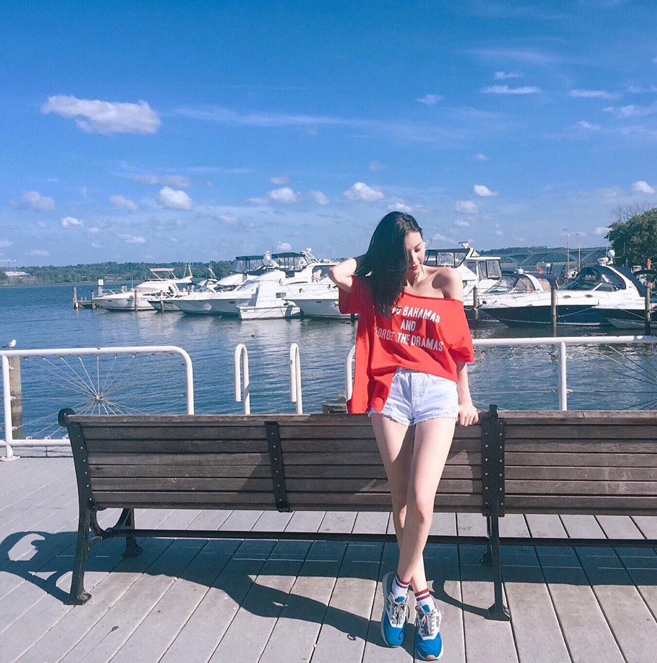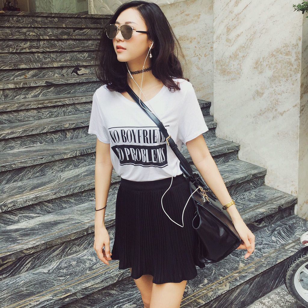 Hoặc áo phông cùng short khoe đôi chân dài miên man.