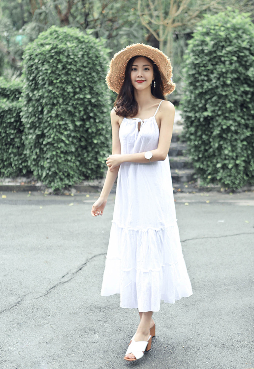 Đơn giản là set váy ren cùng áo sơ mi chất lụa, Ngọc Châm cũng đã khiến bao ánh mắt phải ngước nhìn.