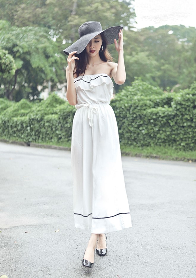 Điệu đà một chút, chân dài đội HLV Lan Khuê chọn jumpsuit ống rộng phá cách, chiếc mũ to rộng vành khiến set đồ trở nên hoàn hảo .