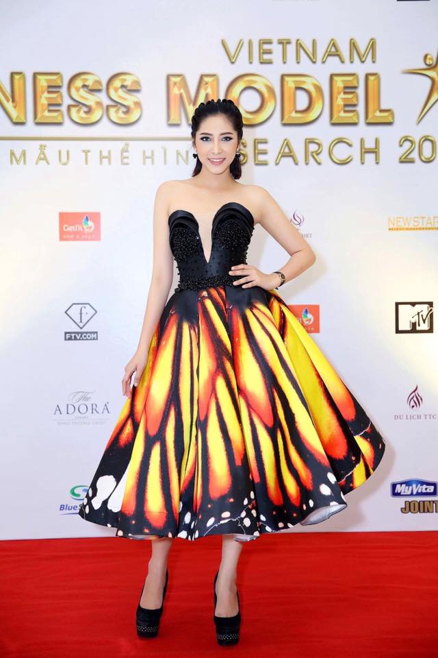 Hoa hậu Đại dương 2014 ưu chuộng những mẫu đầm đuôi cá rườm rà và thường xuyên trưng diện ở các sự kiện giải trí trong nước.