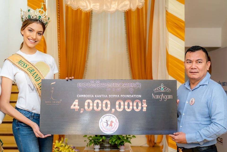Miss Grand International - Valentina Figuera đi thăm Campuchia và trao tiền ủng hộ.