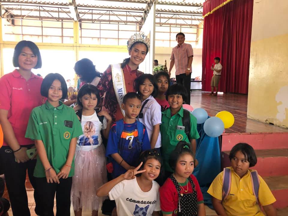 Miss Supranational - Anntonia Porsild đi thăm một trường học ở Korat, Thái Lan nhân ngày lễ thiếu nhi và quyên góp một số dụng cụ thể thao cho trường.