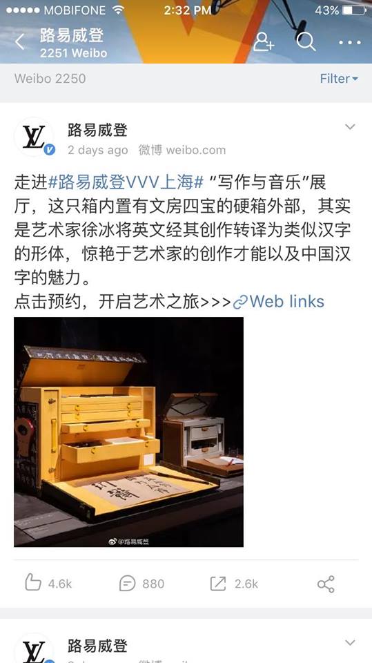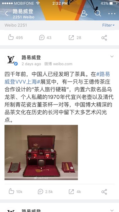 Bài viết của trang Louis Vuitton chính thức trên trang mạng Weibo nói về văn hóa trà của người Trung Quốc