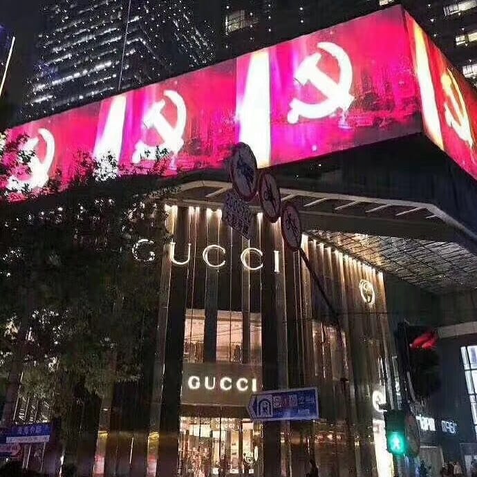 Một cửa hàng Gucci tại Trung Quốc cho chạy đèn LED hình ảnh Cờ của Đảng Cộng Sản Trung Quốc