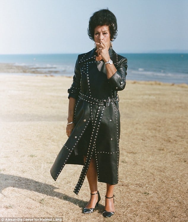 Bà Gillian 78 tuổi, mặc chiếc áo khoác da cừu mới nhất của hãng Helmut Lang được trang trí bằng các đinh tán “cực chất”.