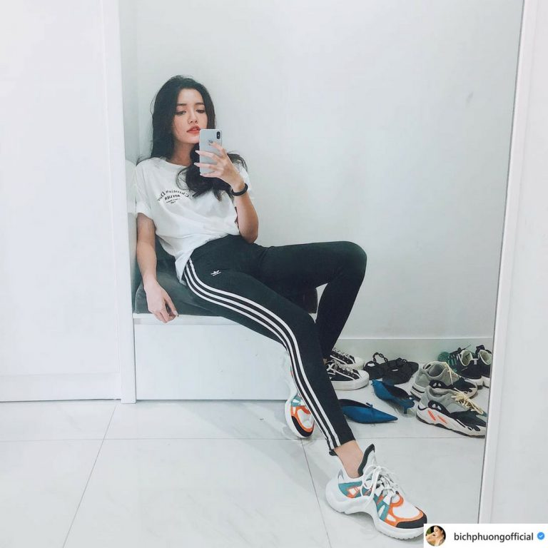 Dù theo đuổi phong cách nữ tính, dịu dàng nhưng nữ ca sĩ Bích Phương vẫn không thể nằm ngoài xu hướng. Cô chọn cho mình đôi dad sneakers Archlight thời thượng của Louis Vuitton.