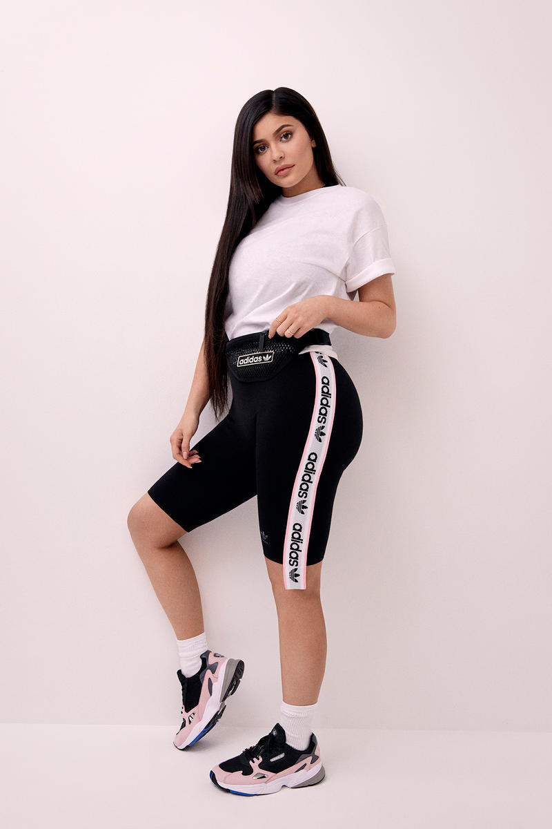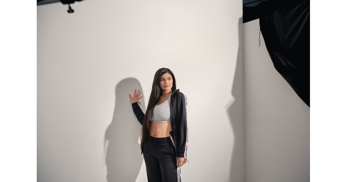 Kylie Jenner với mái tóc đen dài óng ả trong bộ ảnh cho dòng thời trang Falcon của hãng Adidas.