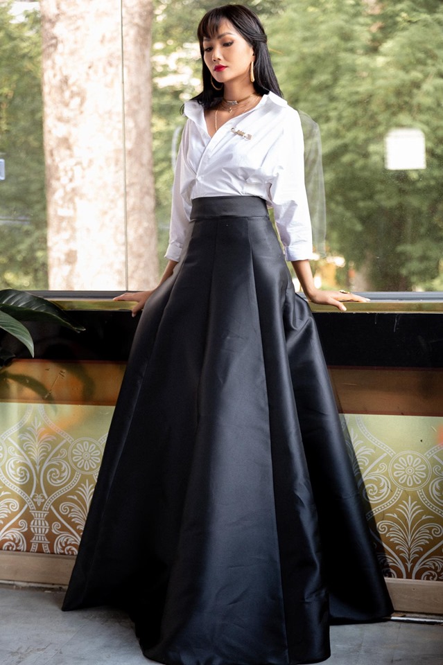 Lần đầu chơi lớn với phong cách quý tộc, sang trọng “Parisian chic” nên ngay sau khi “căng não” để nghe thuyết trình trang phục dân tộc, H'Hen Niê đã kịp “bung lụa” trong bộ trang phục trắng đen cổ điển.