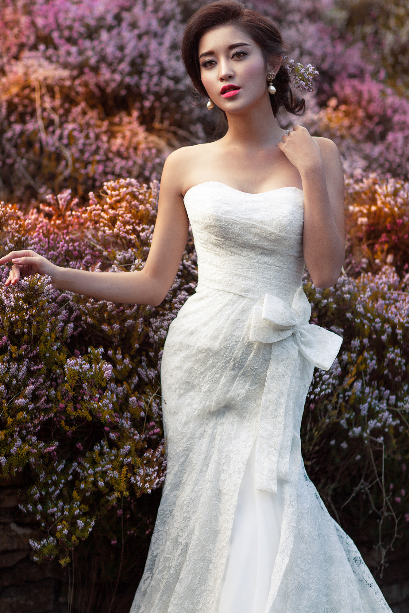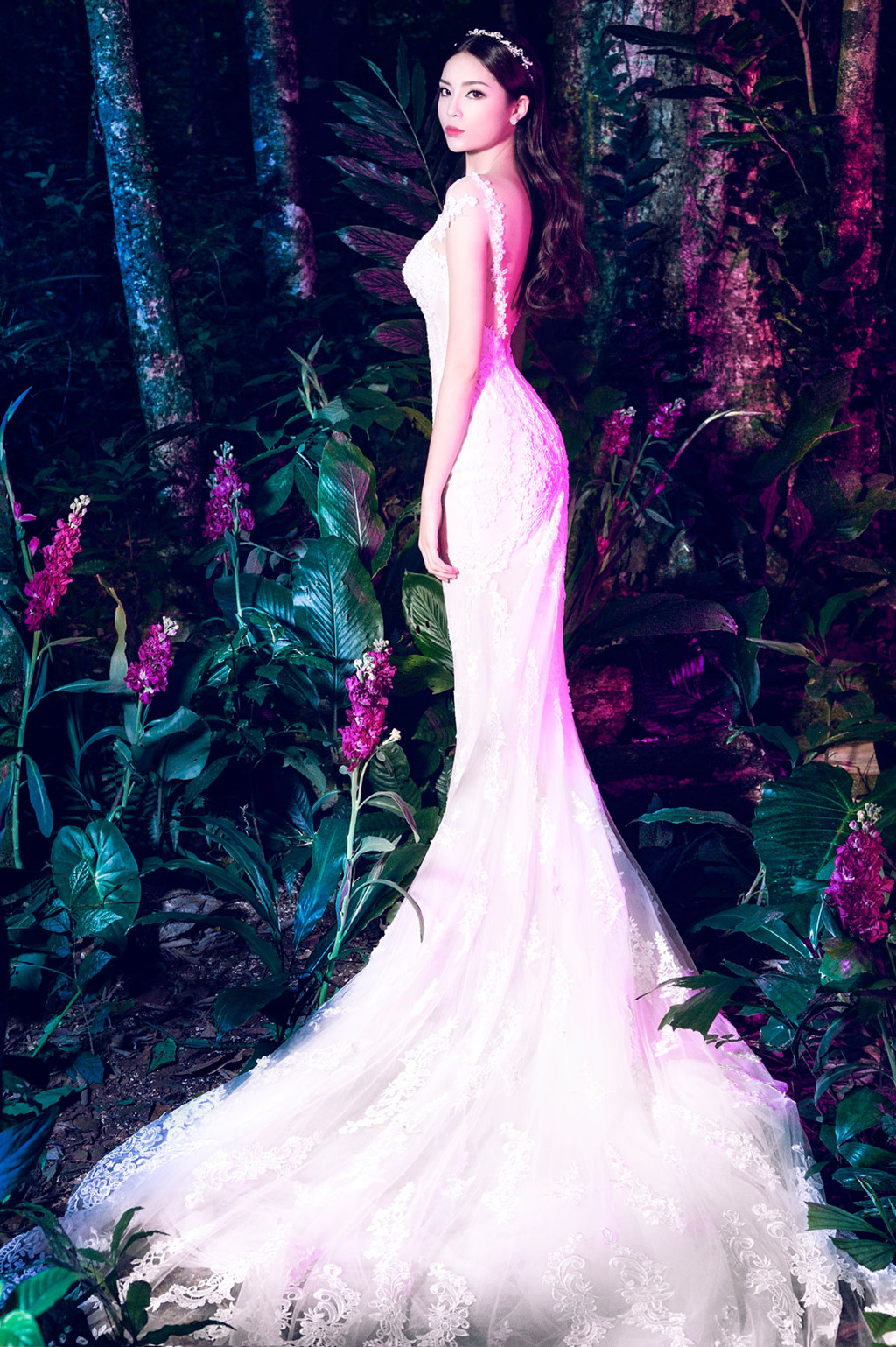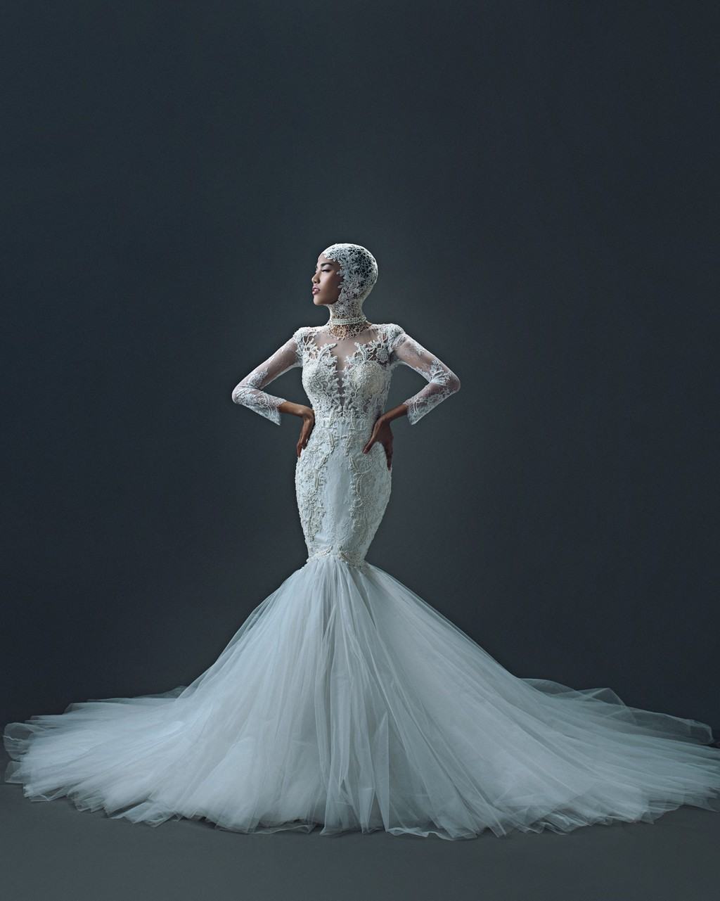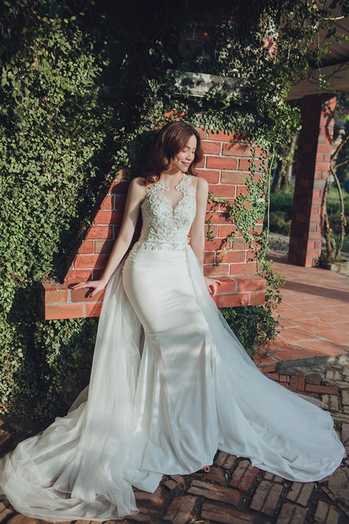Với làn da trắng không tì vết, “vòng eo 56” đẹp thuần khiết trong chiếc váy cưới ren lưới này.