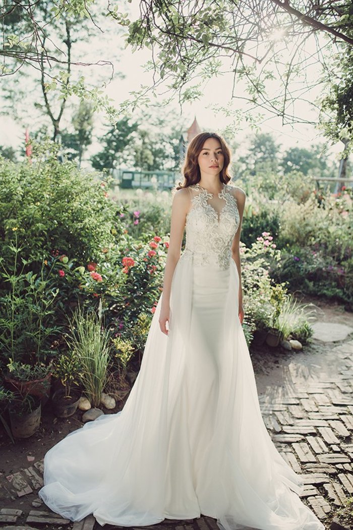 Á hậu Tú Anh là một trong những người đẹp thường xuyên diện các mẫu thiết kế váy cưới.