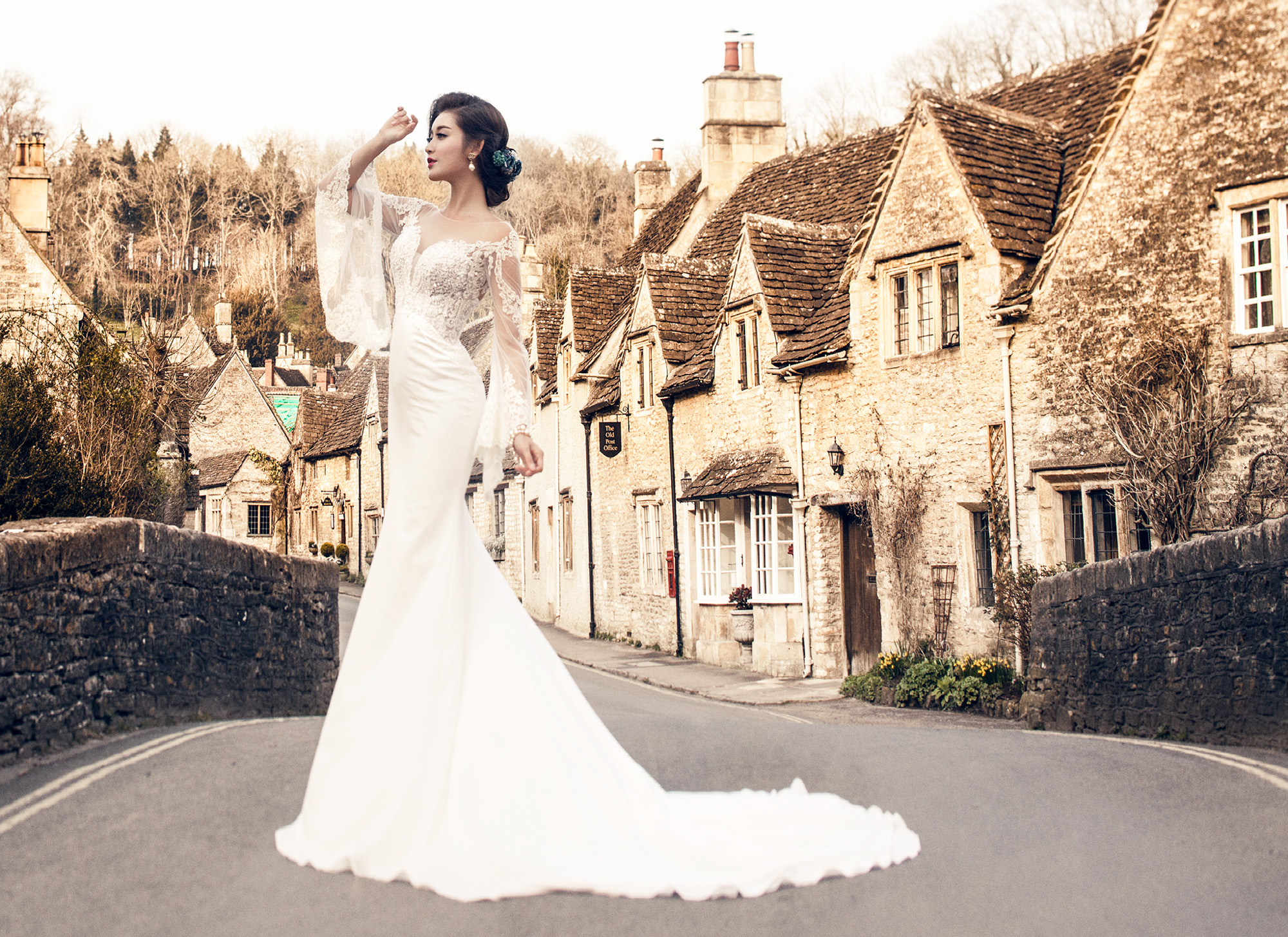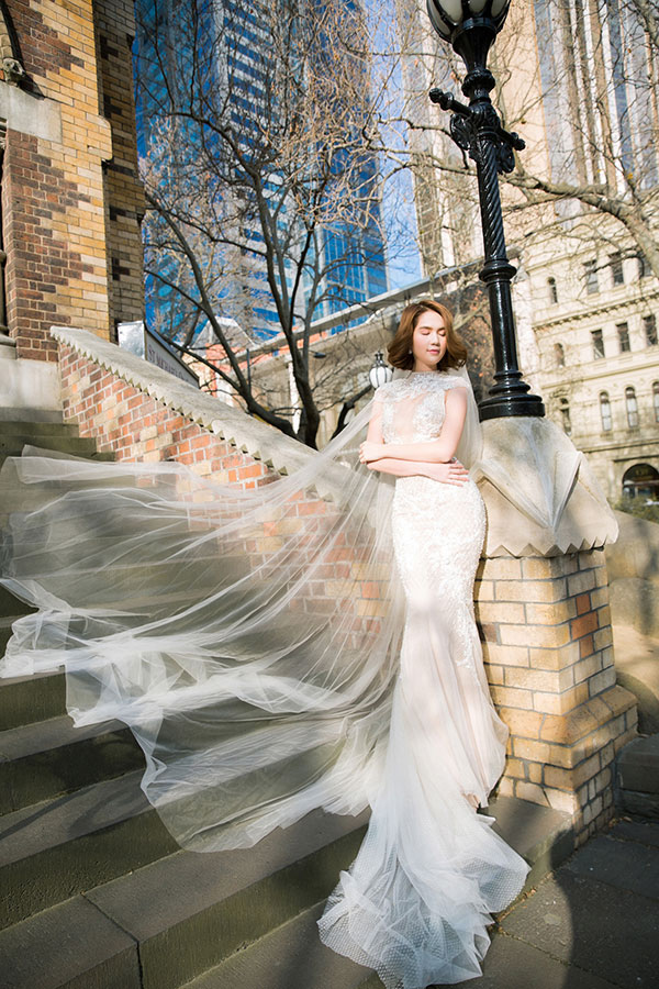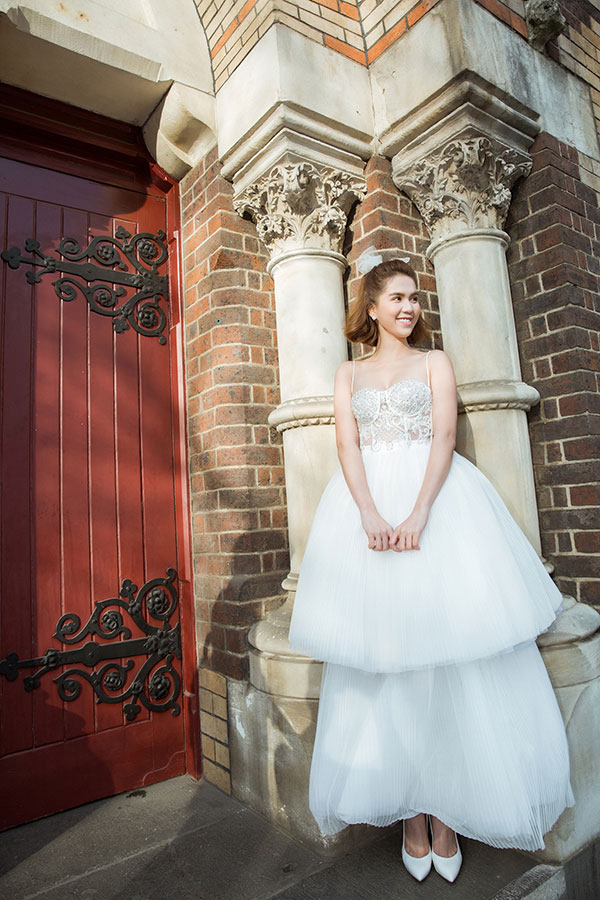 “Chơi lớn” hơn các đàn chị, Huyền My từng có bộ ảnh váy cưới ở nước ngoài.