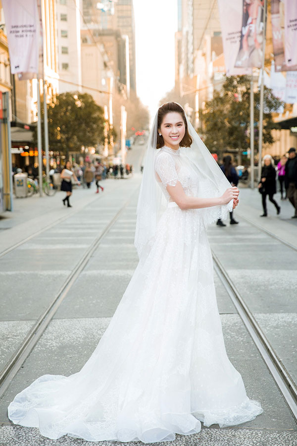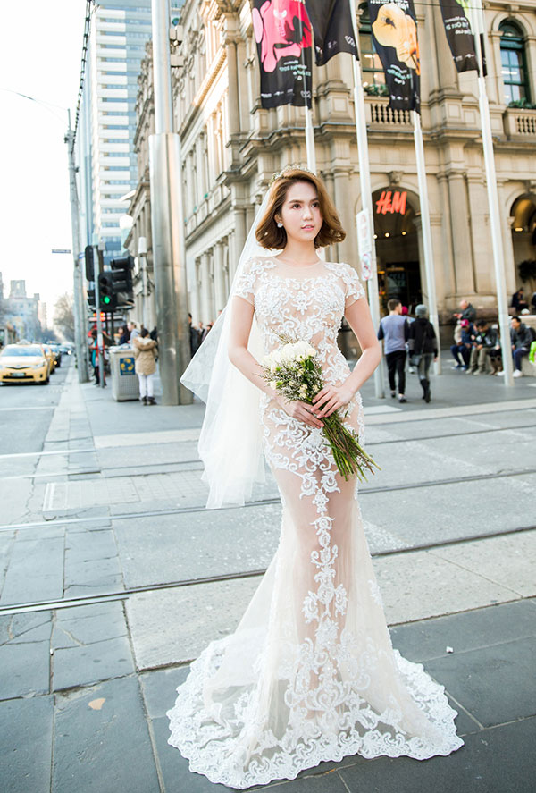 Bên cạnh Hà Hồ, Ngọc Trinh cũng là một trong số những mỹ nhân Vbiz xinh đẹp vô đối trong trang phục váy cưới.