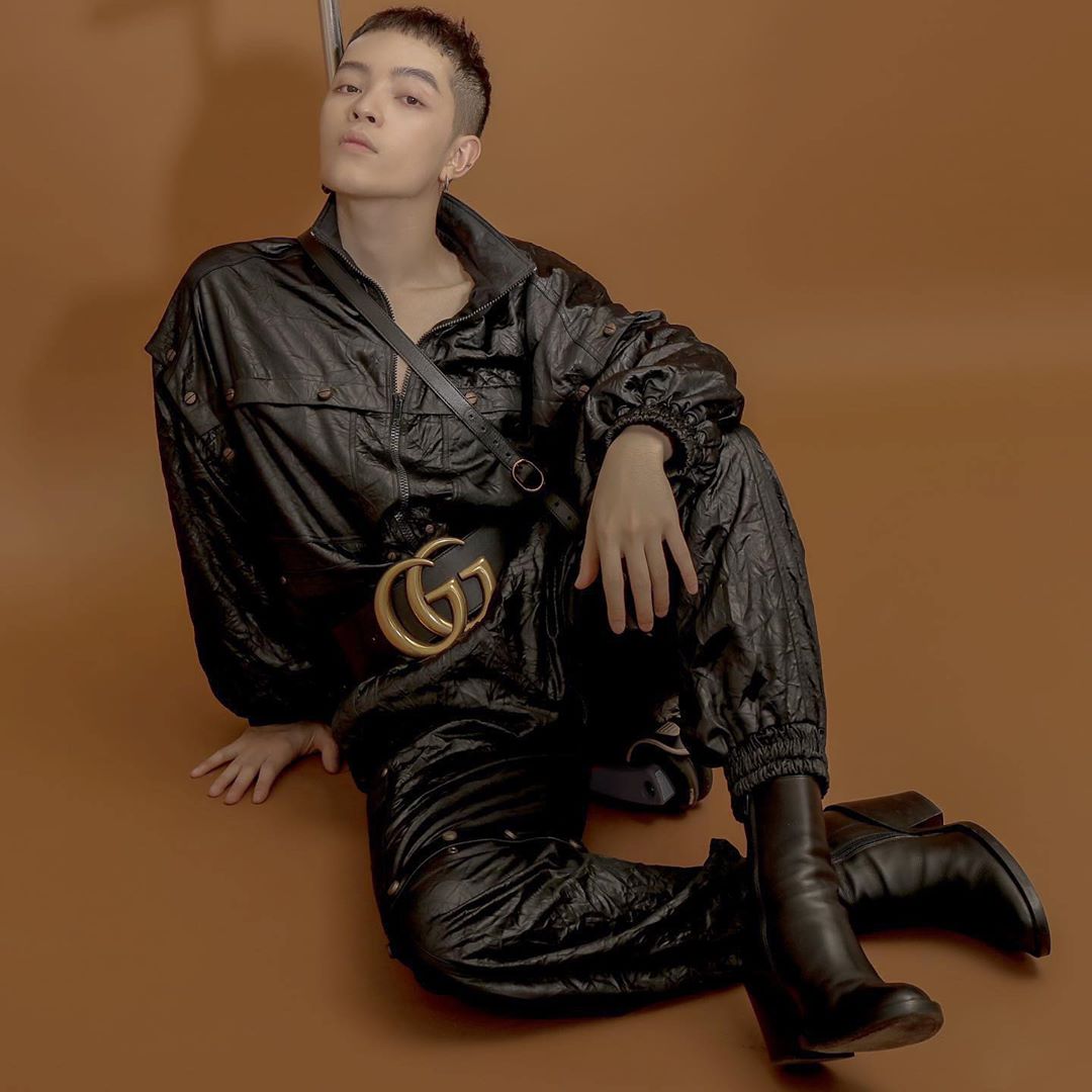 Kelbin Lei tiếp tục khẳng định hình ảnh một fashionisto với cây đồ màu đen cùng thắt lưng bản to của Gucci.