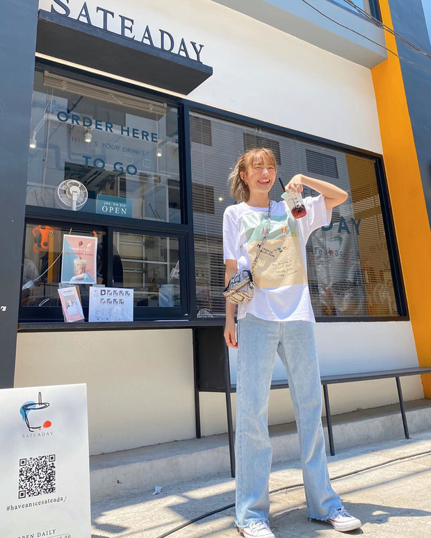 Quần short, áo phông cùng giày sneaker giống Bảo Thy luôn là set đồ phù hợp với ngày hè.
