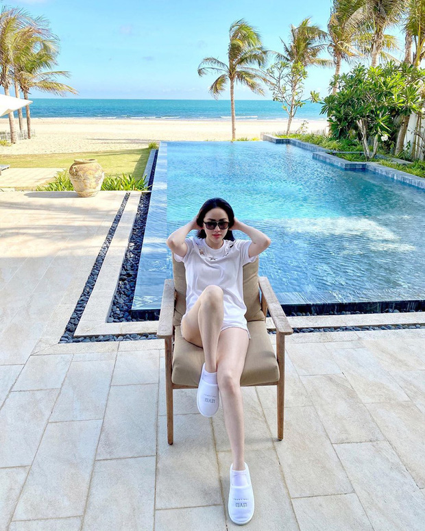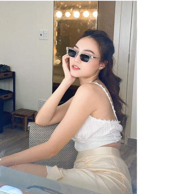 Ninh Dương Lan Ngọc đem đến hình ảnh sang chảnh pha cùng chút nữ tính với combo áo hai dây, quần váy và kính mát thời thượng.