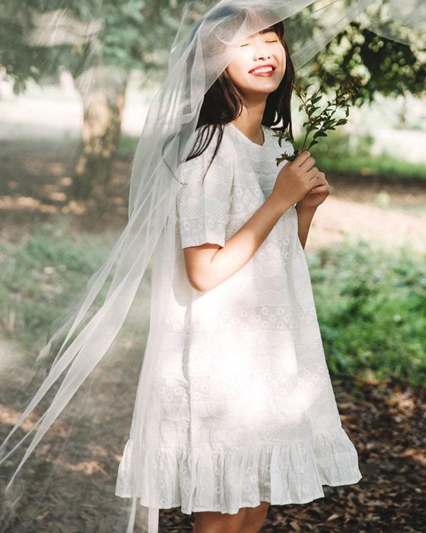 Chỉ cần một tấm lúp voan, nàng sẽ có ngay hình ảnh cô dâu trẻ, sẵn sàng cho nhiều tấm ảnh nữ tính.