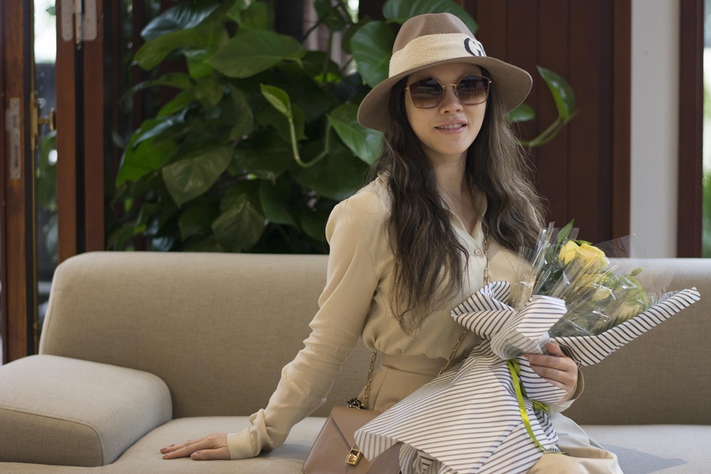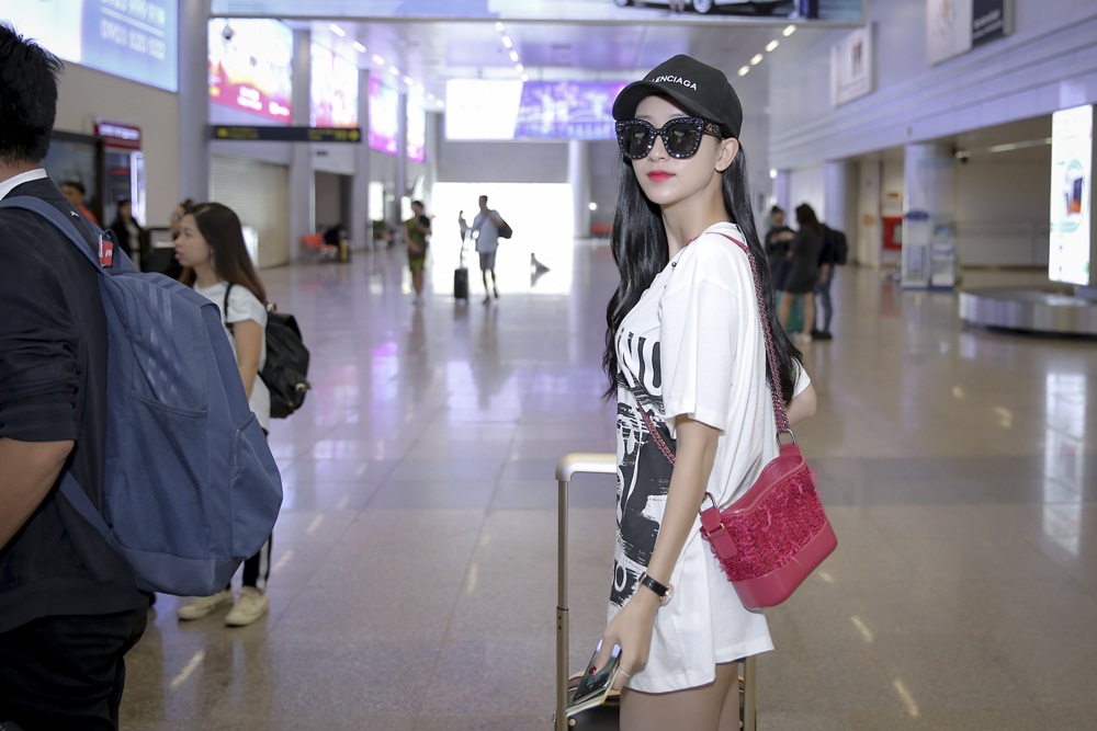 Với thời trang sân bay đơn giản nhưng toàn hàng hiệu, Hà Thu dễ dàng “nổi bật” giữa đám đông.