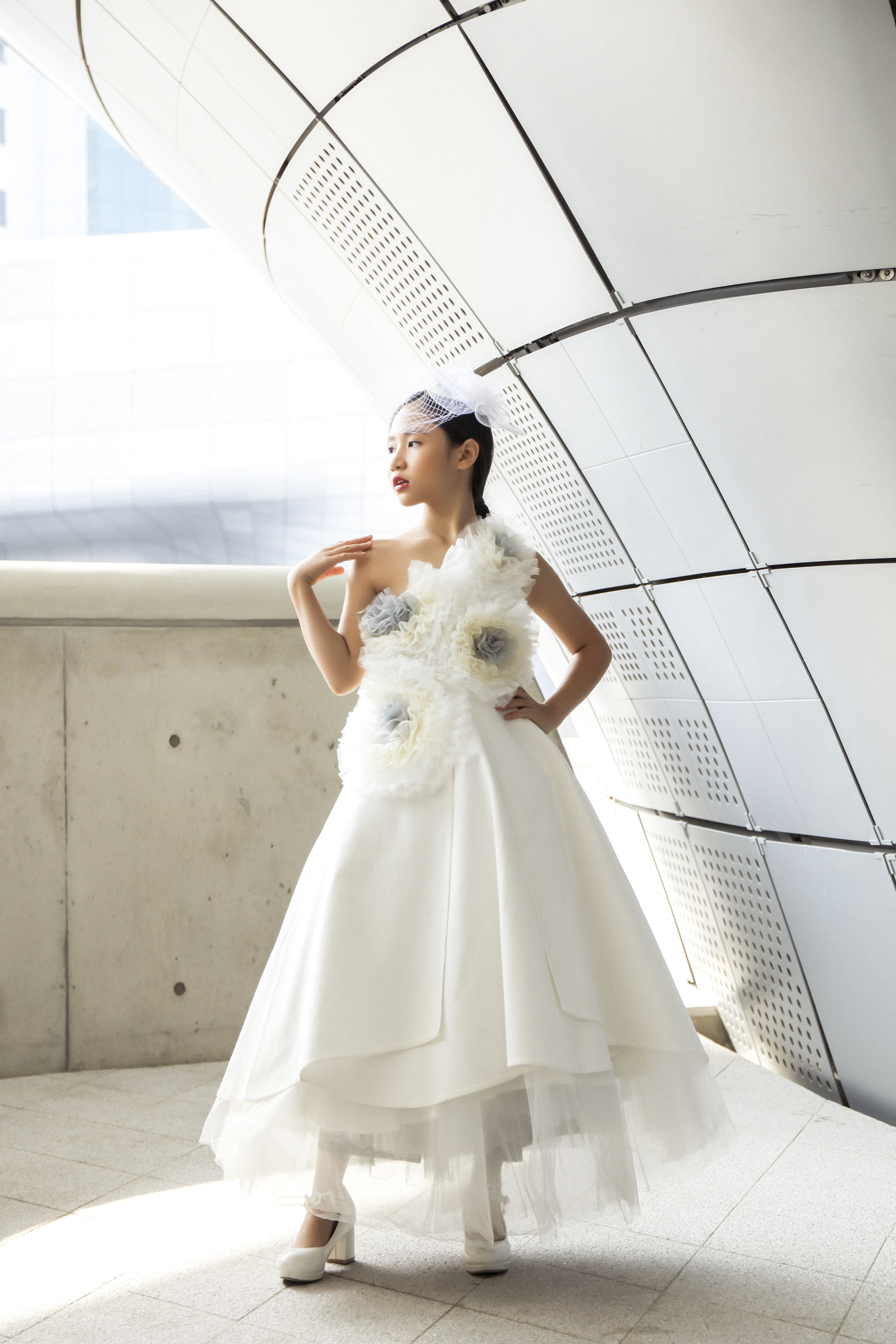 Lấy ý tưởng từ sự chuyển mình của thời tiết khiến cho vạn vật cũng đổi màu, NTK Huy Quang mang đến những mẫu đầm xếp, với điểm nhấn là những bông hoa thời gian vô cùng tinh tế. Chỉ dùng hai màu cơ bản là đen và trắng, kết hợp với những họa tiết được Huy Quang chăm chút tỉ mỉ đã tạo nên những chiếc đầm trở nên sang trọng và quý phái.