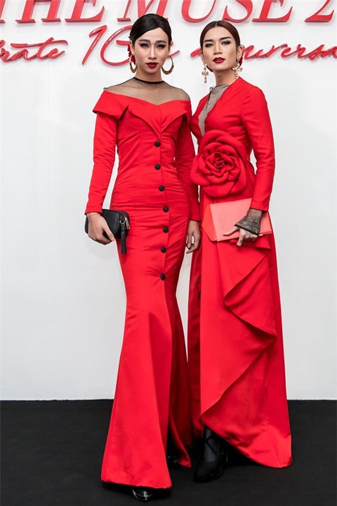 Nhưng so ra, chiếc đầm 2 dây ôm sát dáng vóc cao thanh này, gương mặt trang điểm đẹp, sang trọng của Hải Triều khiến gái thiệt còn phải ghen tỵ