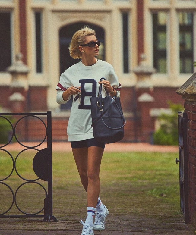 Nếu luôn theo dõi instagram của Hailey thì chắc hẳn bạn sẽ thấy cô nàng là fan ruột của các thể loại quần bike short cho nên khi chụp loạt ảnh với style quần này thì chân dài đã xuất sắc mix đồ sao cho đẹp nhất.