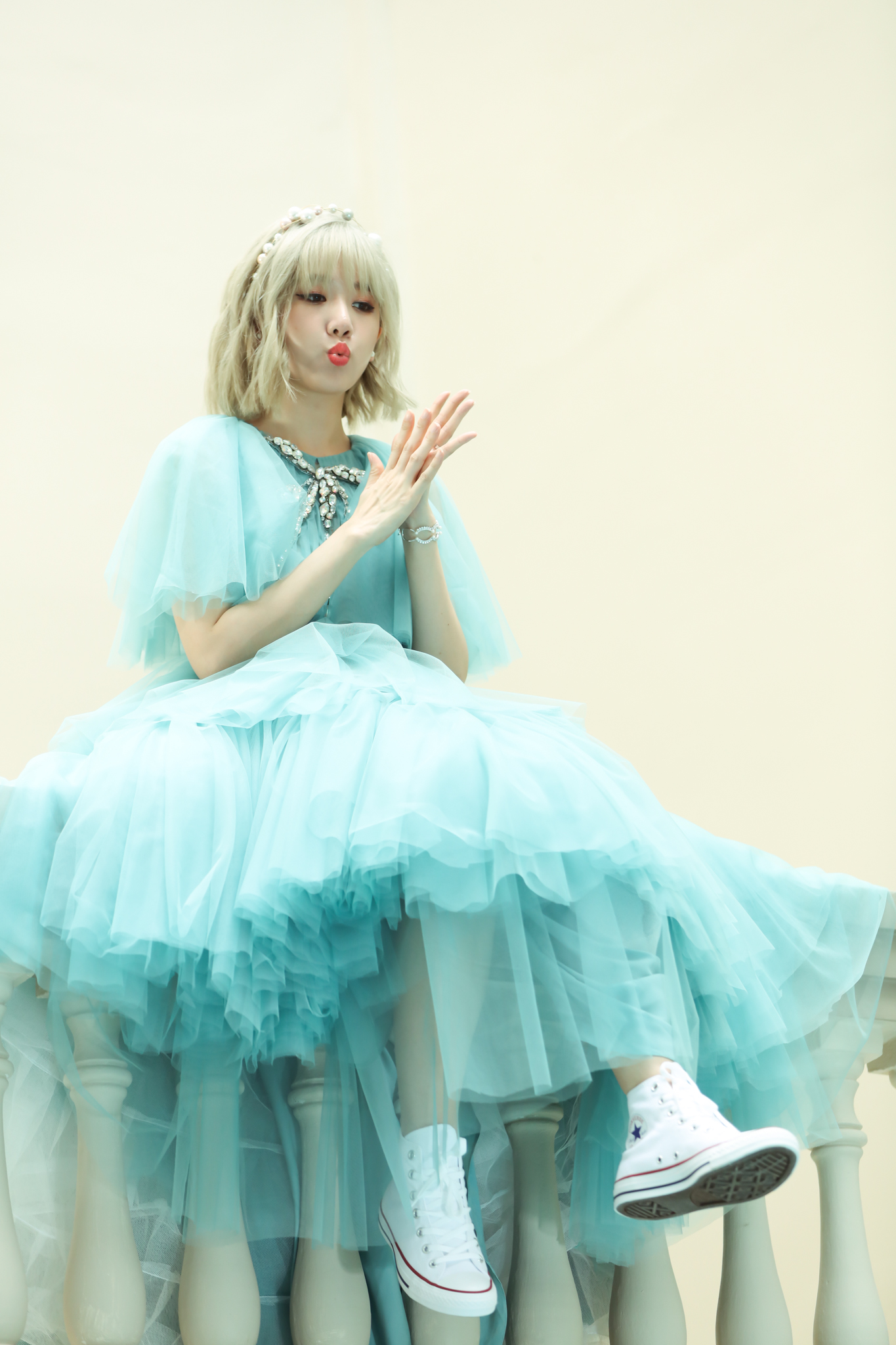 Thay vì lựa chọn kết hợp với giày cao gót, Hari quyết định chọn giày thể thao trắng đơn giản.
