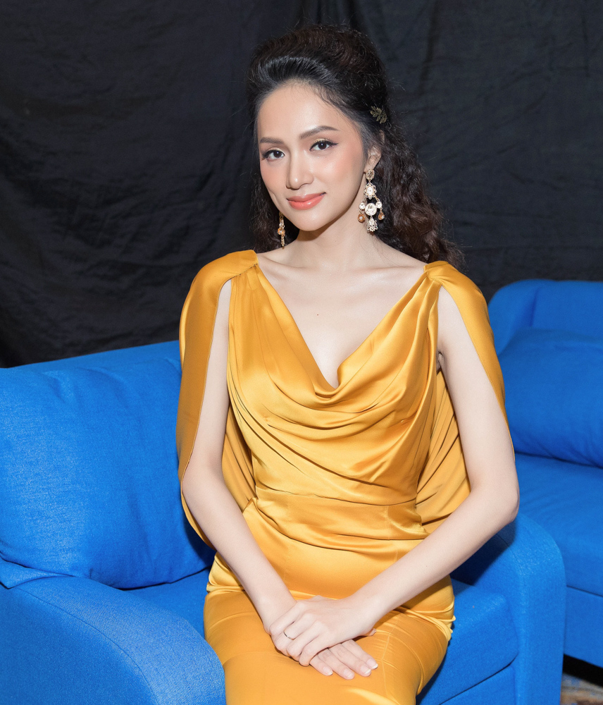 Hương Giang khoe dáng trong một chiếc váy cổ đổ, được xử lí drapping.