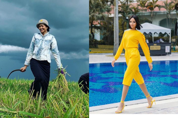 H'Hen Niê ra đường diện đồ sành điệu xứng tầm fashionista, thế nhưng trở về quê nhà vùng cao liền trở lại làm “gái quê” chính hiệu. Hoa hậu không ngại đi chân trần, mặc đồ ngủ, đội nón lá ra vườn cuốc đất phụ ba mẹ.