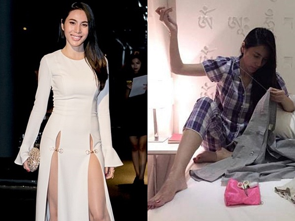 Thúy Vi khiến mạng xã hội bùng nổ khi tung hình “dìm” chính mình với sự khác nhau khi ở nhà và ra đường. Nếu xuống phố diện đồ lồng lộn, makeup cực nuột, hot girl thị phi ở nhà lại để mặt mộc, đầu bù tóc rối và mặc đồ ngủ bình dân.