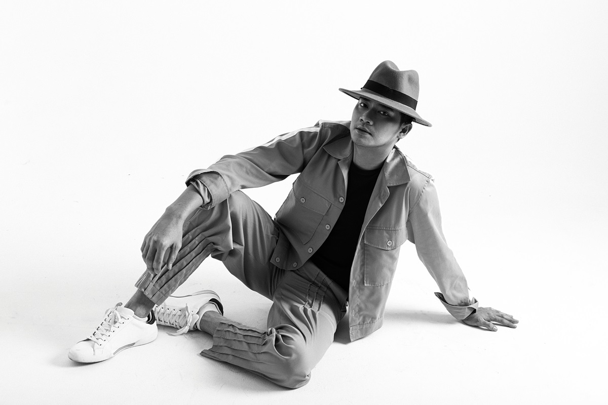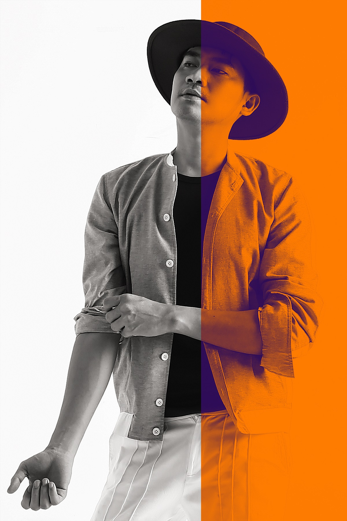 Mũ phớt cùng áo sơ-mi layer mang lại cho Minh Luân hình ảnh một quý ông thập niên 60s.