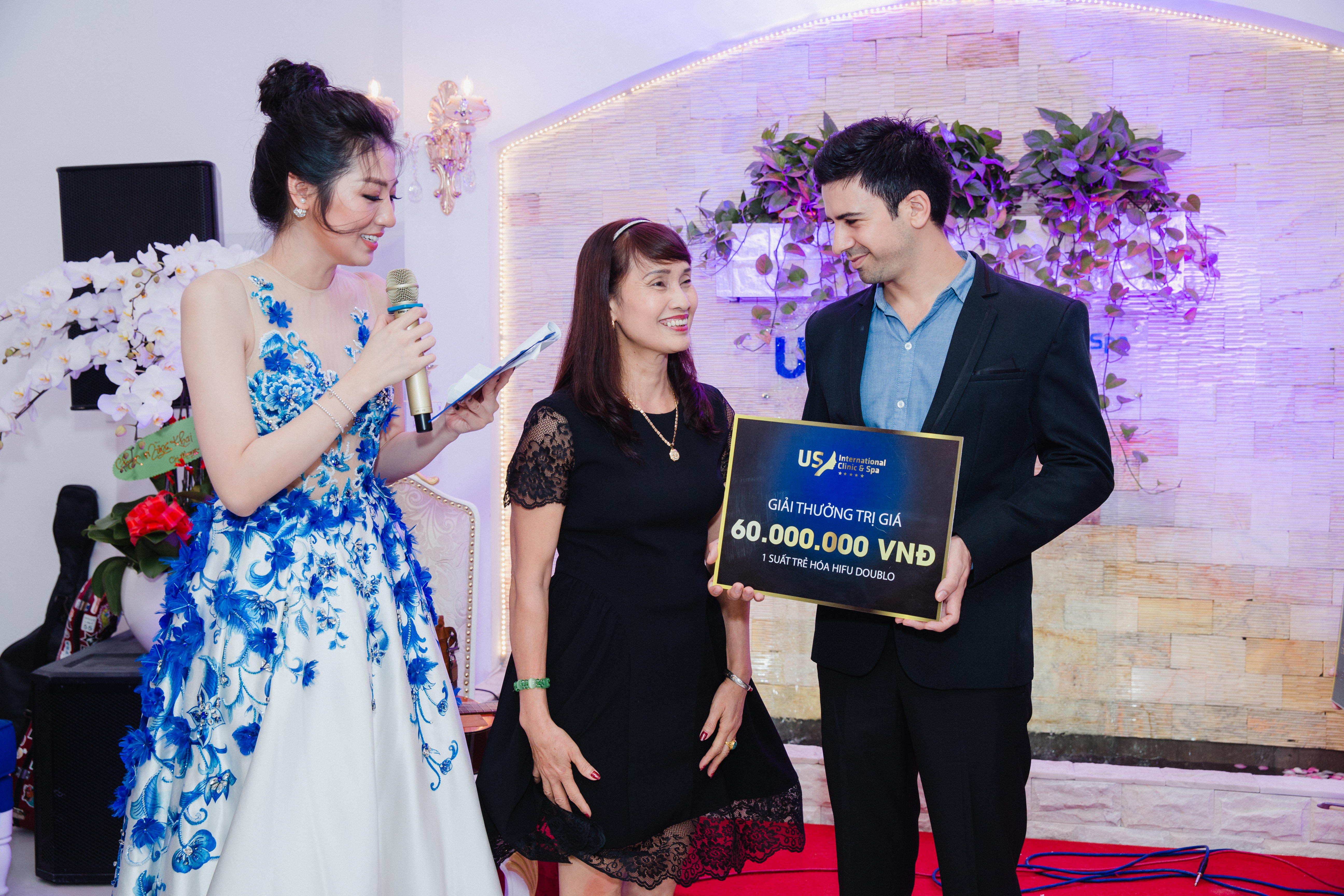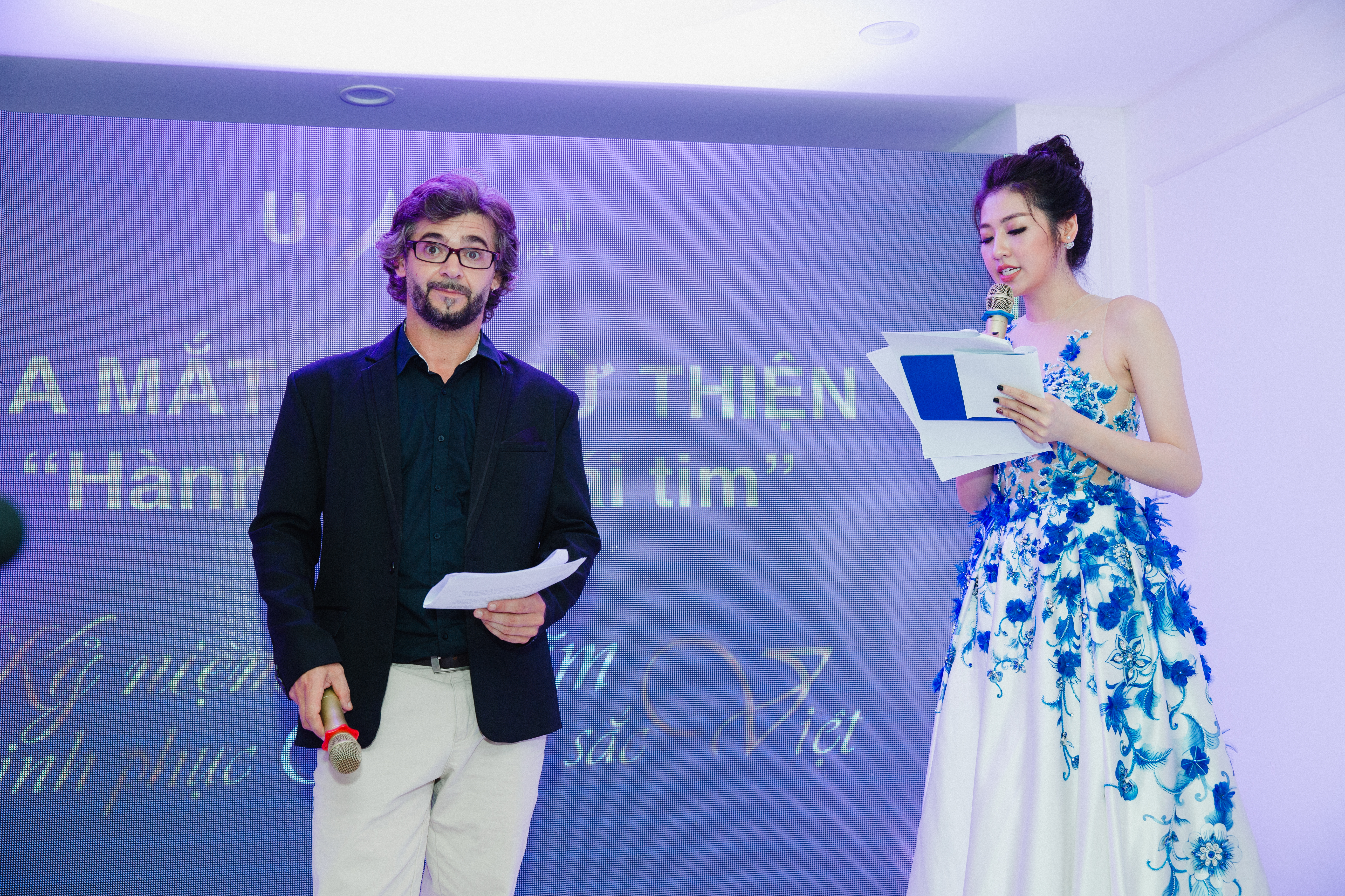 Trong sự kiện ra mắt Quỹ từ thiện Hành trình trái tim ủng hộ các em bé có hoàn cảnh khó khăn bị bệnh tim bẩm sinh có cơ hội được phẫu thuật của Viện thẩm mỹ US International Clinic, Á hậu Tú Anh còn đảm nhận vai trò MC.